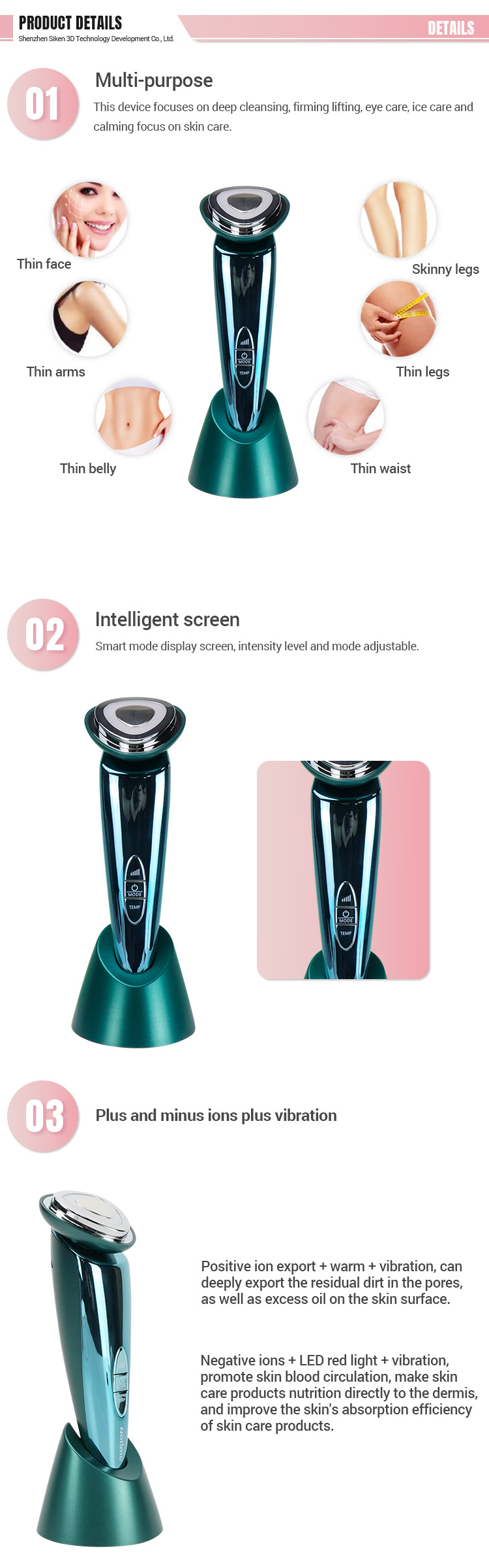 Dodatni eksport jonów ciepłych wibracji, może głęboko eksportować resztki brudu w porach, a także nadmiar oleju na powierzchni skóry.